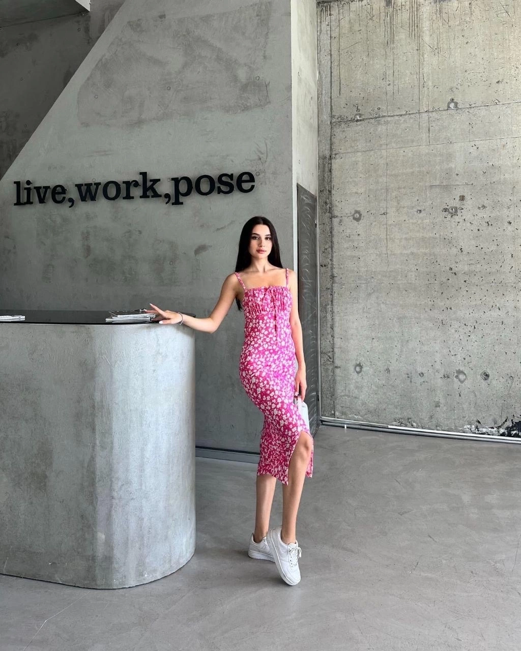 KAZAX'in şık ve tarz desenli askılı elbisesi ile göz kamaştırıcı bir görünüme sahip olabilirsiniz.