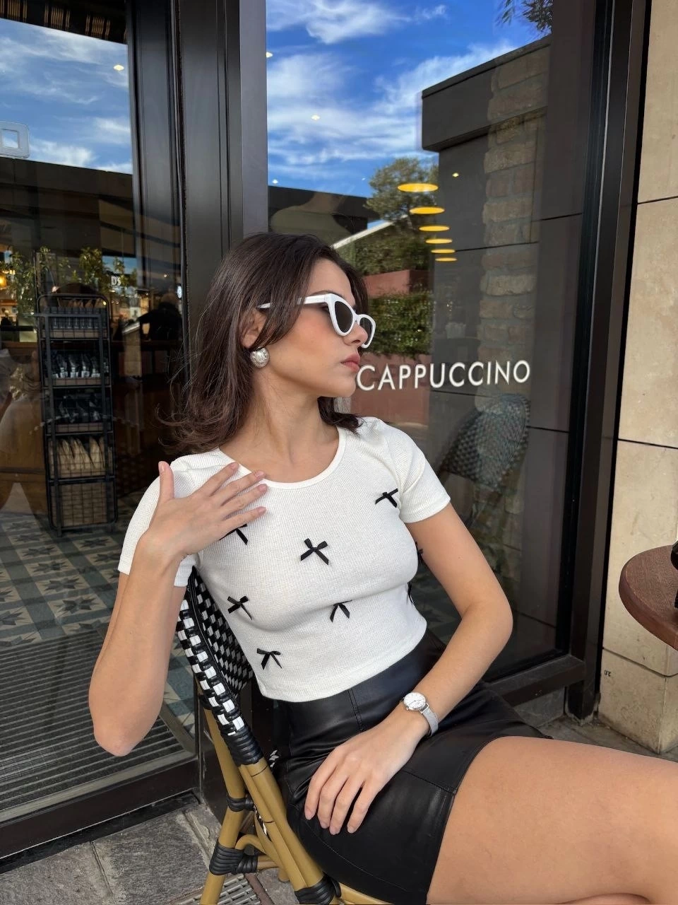 Bağcıklı fiyonk detayıyla feminen bir görünüm kazandırır.