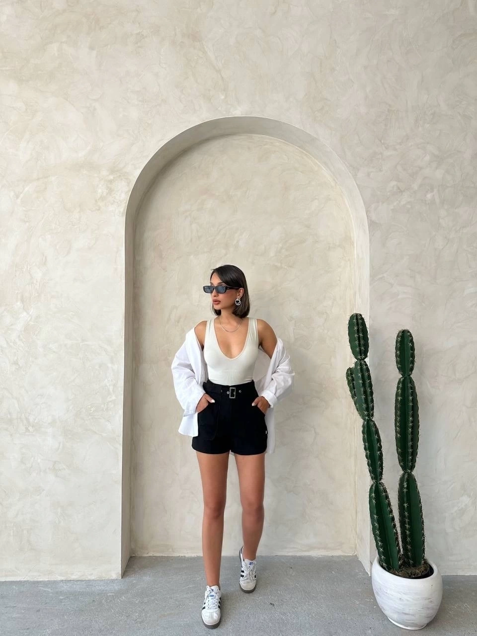 Şık ve şık bir görünüm elde etmek için Kemer Detaylı Gabardin Şort Siyah S25289 tam aradığınız parça olabilir. İnce kemer detayıyla dikkat çeken bu şort, günlük kullanım için ideal bir seçenektir.
