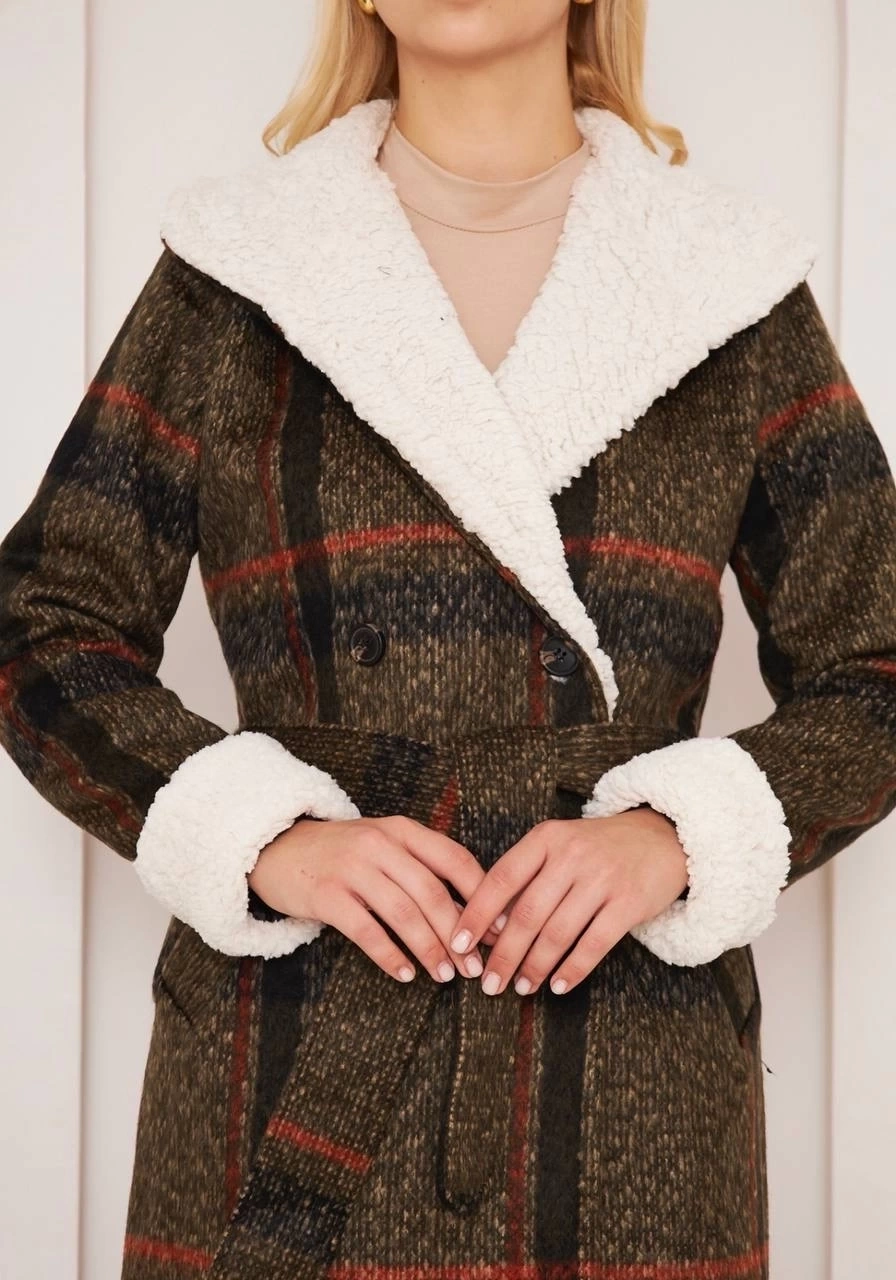 Cepli kuşaklı kaşe kaban kırmızı st26458