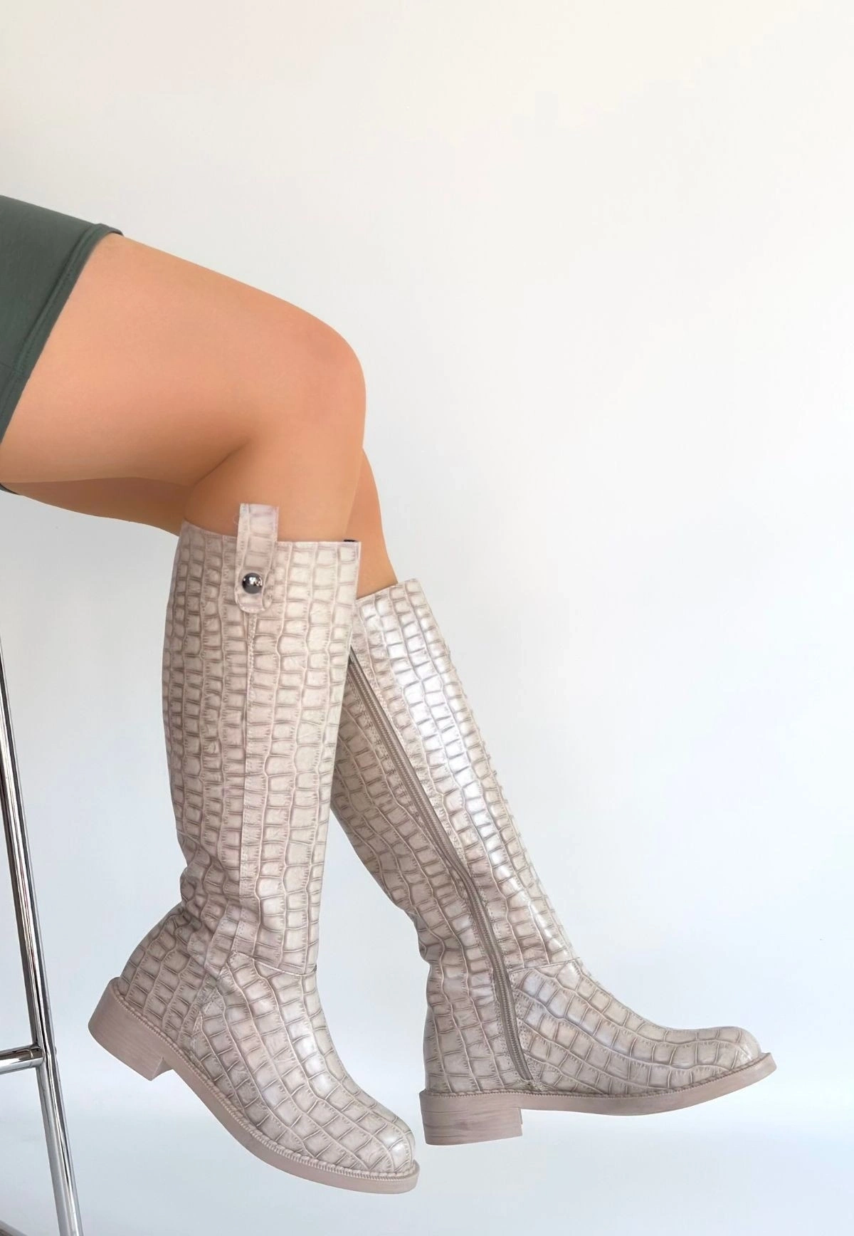 Detay: Topuklu Yandan Fermuarlı Diz Altı Çizme
