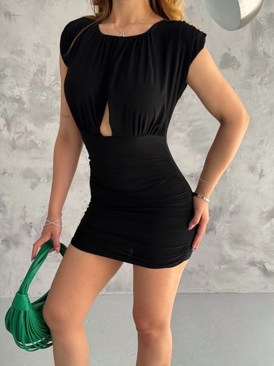 Şıklığı ve rahatlığı bir arada arayan kadınların tercihi olan pencereli mini mikro elbise, tarzınızı yansıtmanız için ideal bir seçim!