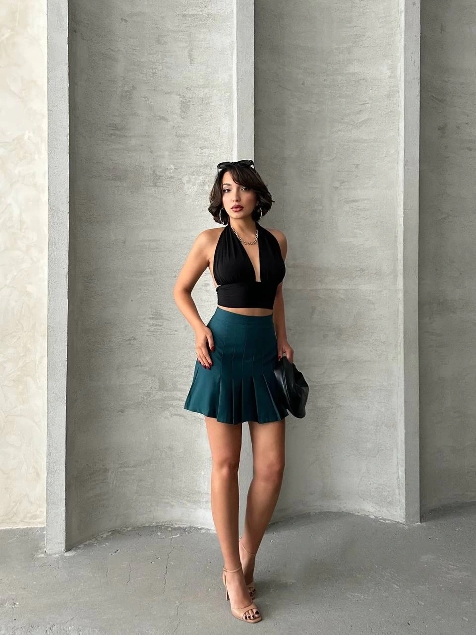 Çok şık ve trend bir görünüm elde etmenizi sağlayacak olan Yeşil Pileli Düğmeli Etek, gardırobunuzun vazgeçilmez parçalarından biri olmaya aday! Hem şık hem de rahat kesimi ile günlük hayatta veya özel davetlerde tercih edebileceğiniz bu etek, tarzınızı yansıtmanızı sağlayacak.
