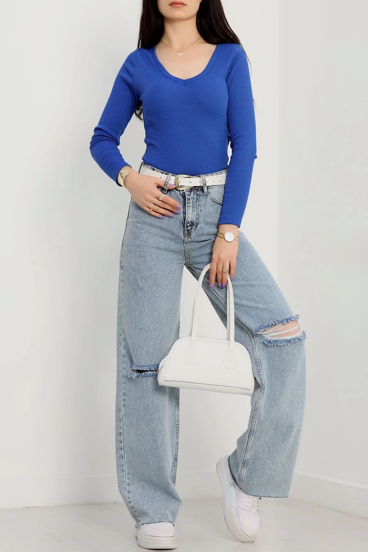 - V yaka kaşkorse detayı ile şık bir görünüm sunar.